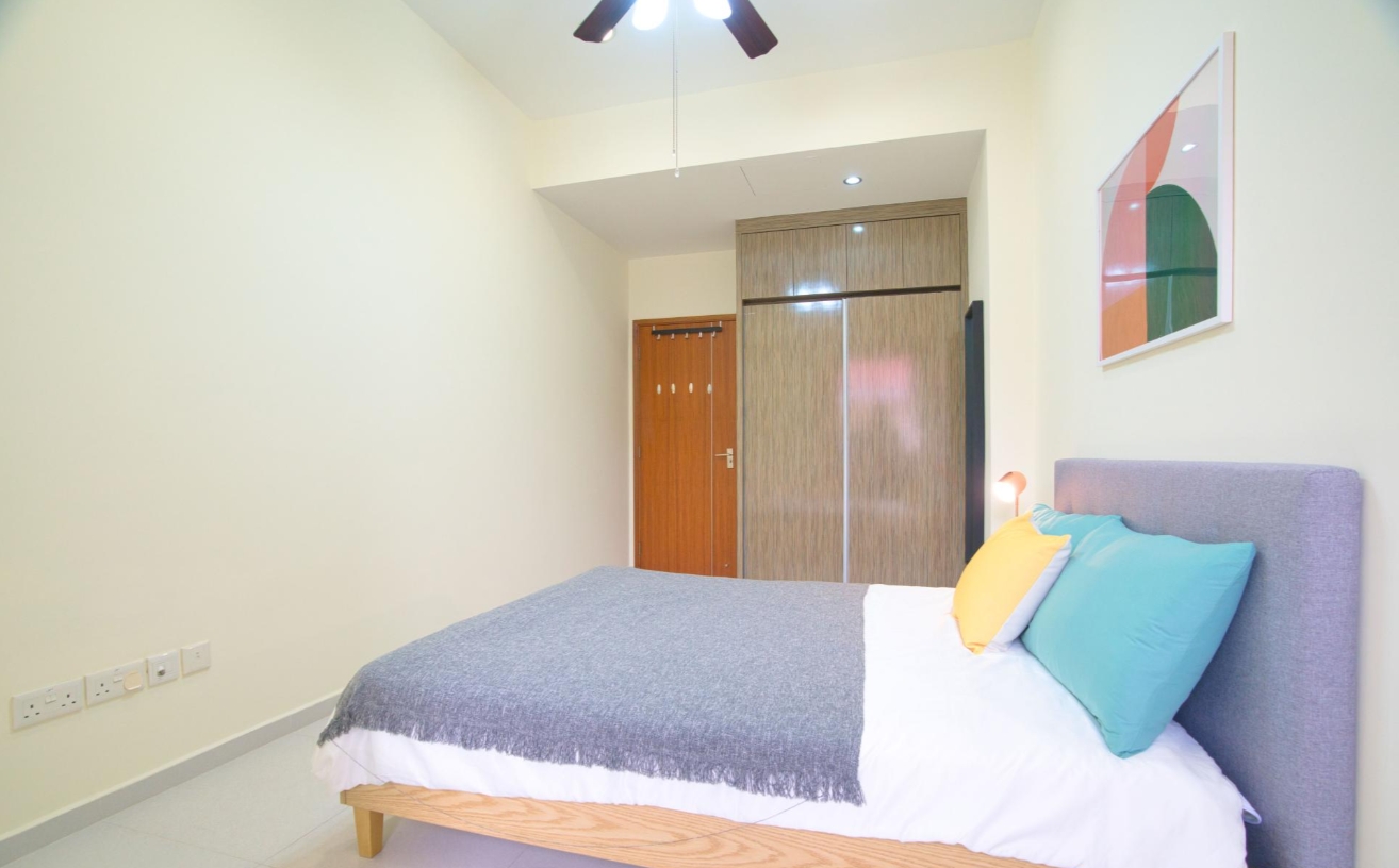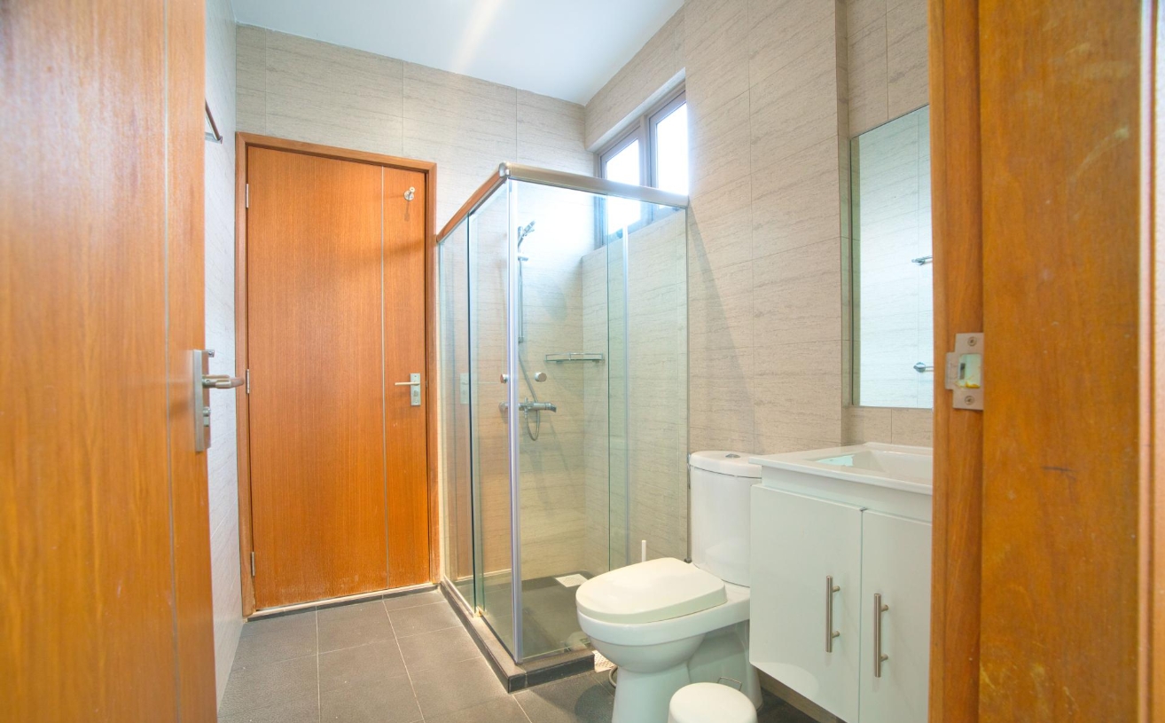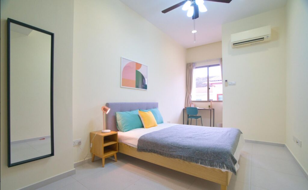 This 3-storey landed home has spacious rooms for rent. On the first floor, you can find the comfortable living area, fully equipped with a sofa set and smart TV, and also a dining area where you can enjoy your meals. This landed home for rent also has a balcony on the top floor, where you can enjoy alfresco tea time with your significant other while basking in the sun. All bedrooms come with Cove basic finishings such as a queen size bed, bedside table and lamp and also a study desk for your WFH needs.