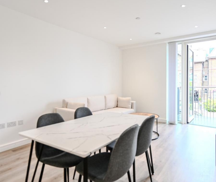 The property features a bright and spacious open-plan living and dining area, designed to maximise natural light and create a welcoming atmosphere. The contemporary kitchen is fully fitted with integrated appliances and sleek cabinetry, combining functionality with modern style.