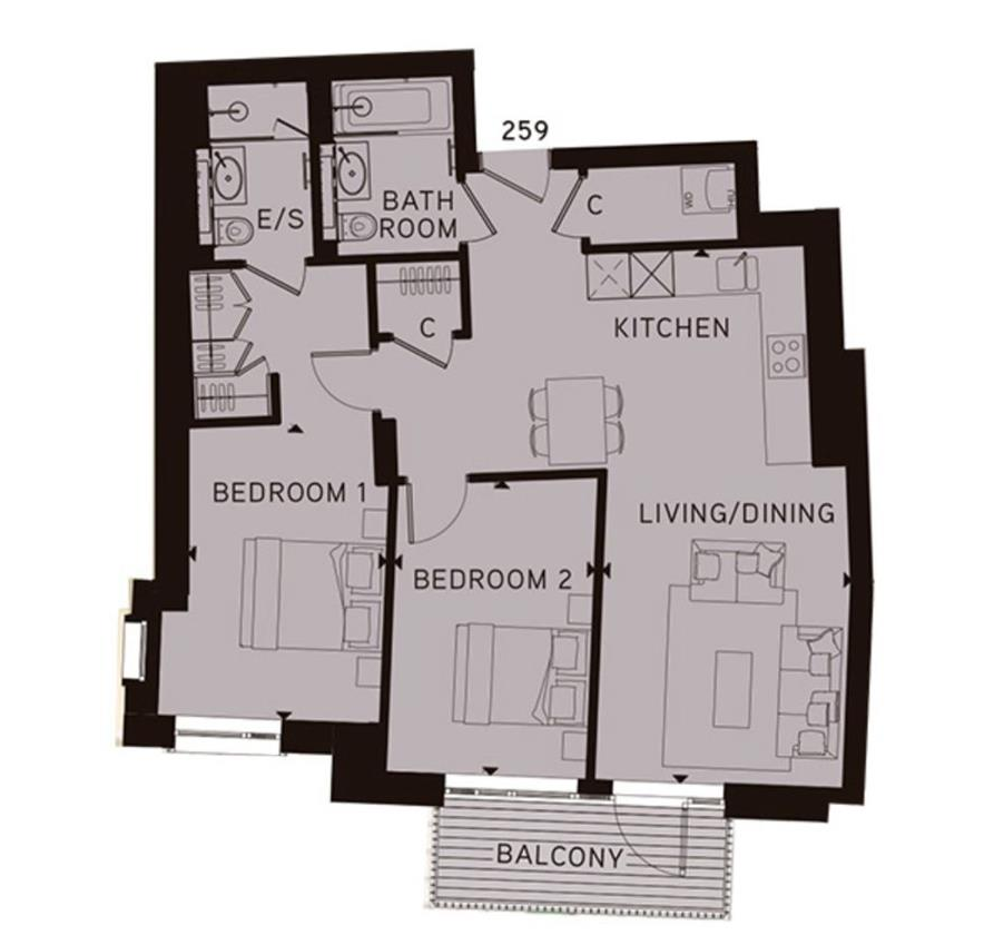Both bedrooms are generous doubles, with the principal bedroom benefiting from fitted storage and a private en-suite bathroom. The second bedroom is served by a stylish family bathroom, making the apartment ideal for professionals, sharers, or small families. Additional benefits include ample storage and well-maintained communal surroundings.