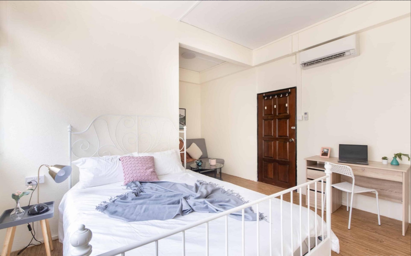 Meal times at the dining area in this unit will be such a pleasant experience with it’s well lit natural lighting in the day, while allowing you to enjoy the starry views at night. This home at Hock Mansions has a total of five rooms, including two rooms with an ensuite bathroom. Each room comes with a study desk with storage space, where you can store your work-from-home essentials. The living room in this unit is super spacious and fits two sets of sofas so imagine how exciting movie nights can be with your flatmates and friends!