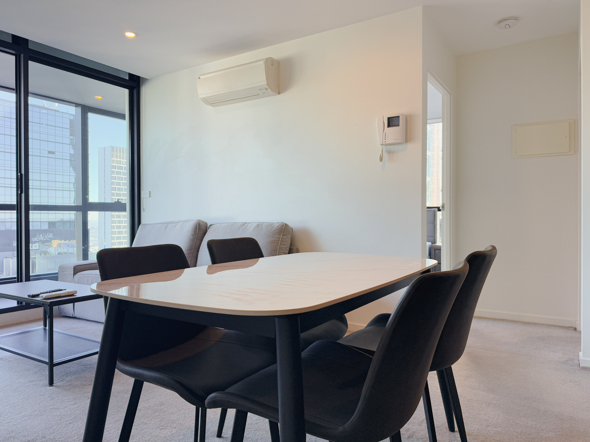 This fully furnished three-bedroom two-bathroom apartment is located in the contemporary apartment at 8 Sutherland St. With Melbourne Central across the road and RMIT, Queen Victoria Market, and QV just minutes away, it offers a high-end lifestyle with unrivalled amenity and everything you need on your doorstep. With large open-plan kitchen and living area, it has been finished with the highest of quality appliances and furniture.