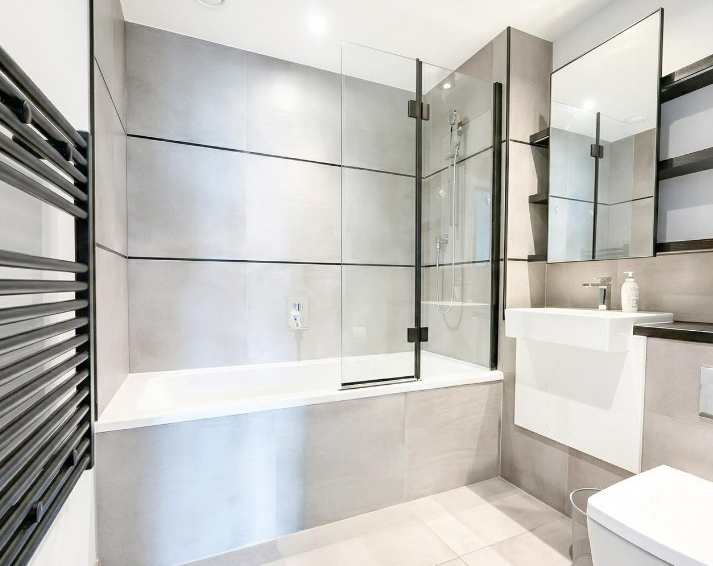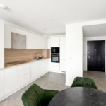 Internally, the property offers a bright open-plan living and dining area with direct access to the terrace, alongside a contemporary kitchen fitted with integrated appliances and sleek finishes. Both bedrooms are well-sized, with the principal bedroom benefiting from a modern en-suite, while a second bathroom is finished to a high standard. Large windows and thoughtful design ensure excellent natural light throughout.